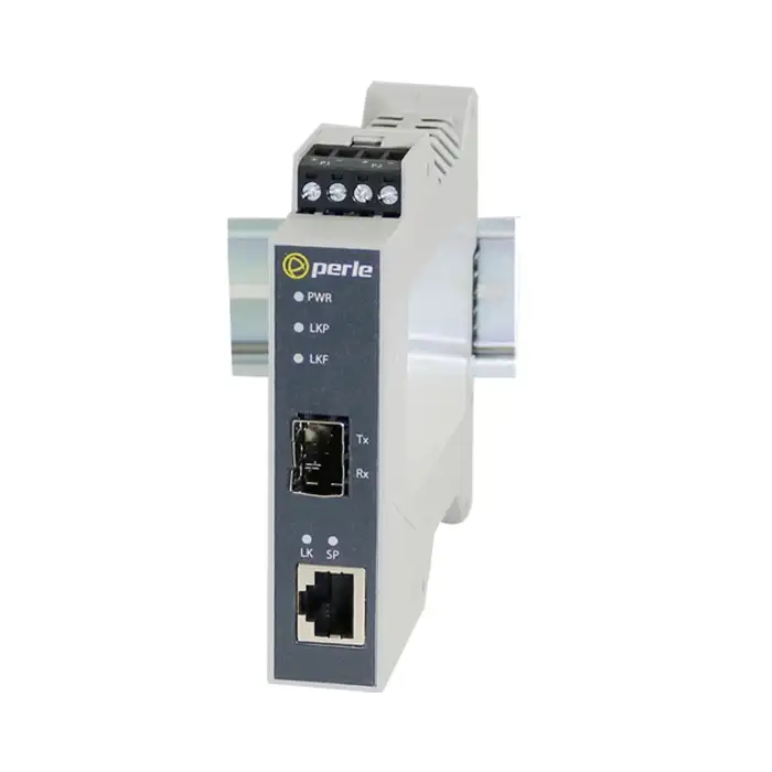 Perle SR-1000-SFP-XT DIN Rail Media Converter Industrial Gigabit Copper to Fiber Converter